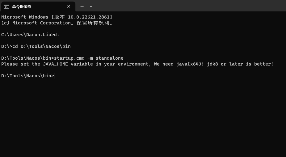 D:\Tools\Nacos\bin>startup.cmd -m standalone