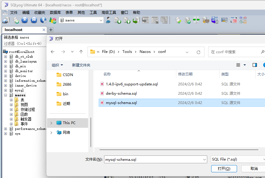 3、创建Nacos数据库