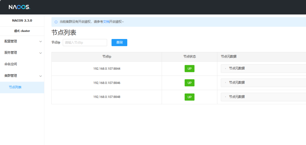 Nacos(Naming and Configuration Service)是一个用于服务发现、动态配置管理以及可视化服务管理的开源平台。Nacos支持构建弹性的、动态的、易于维护的微服务架构,并为大规模微服务体系的管理提供了完整的解决方案。在Nacos的集群视图中,Nacos可以通过横向扩展的方式构建多个节点,形成一个高可用的集群,以确保系统的稳定性和可靠性。