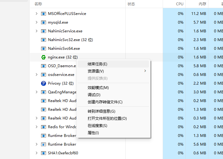 双击根目录下的nginx.exe,双击后一个黑色的弹窗一闪而过就消失了,启动就完成了。