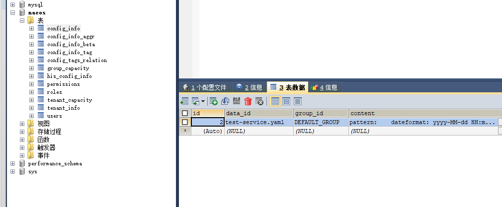 我们打开我们刚刚创建的 Nacos 数据库,查看 config-info 表: