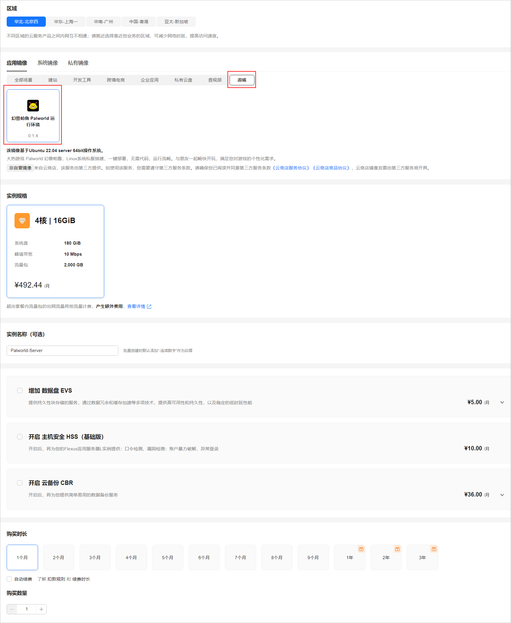 设置购买时长。如果打算长期玩,最好勾选上“自动续费”功能,服务器到期前会自动续费,比较省事。
