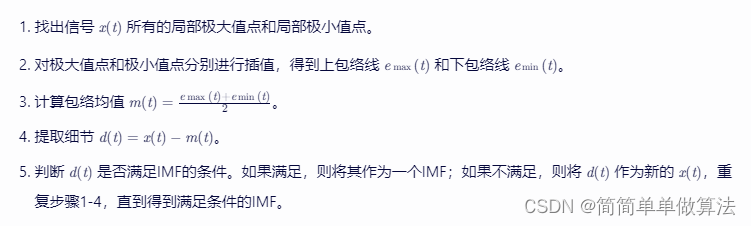 EMD通过以下步骤对信号进行筛分,得到一系列IMF: