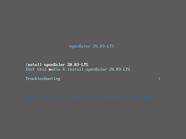 进入后选择第一个“Install openEuler 20.03-LTS”。