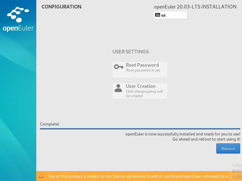 配置完成后单击“Reboot”重启。