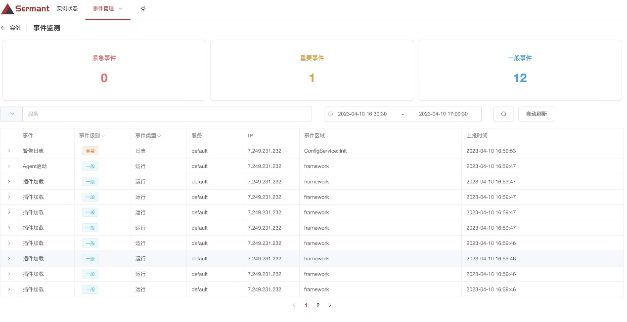 针对可观测性,我们建立了对Sermant运行状态及服务治理能力状态的监控机制,用户能够更直观,更清晰的看到Sermant进行服务治理的过程,可用于快速了解Sermant运行状态及当前已生效的服务治理能力,使服务治理有迹可循。用户通过访问Backend,可在前端页面直接看到Sermant运行状态,服务治理能力触发的事件以及Sermant服务运行期间产生的警告、错误等日志信息。 Sermant的自观测能力解决了JavaAgent难以运维观察的问题,对使用Sermant来进行微服务治理的用户来说很好的实现了Agent的管理。