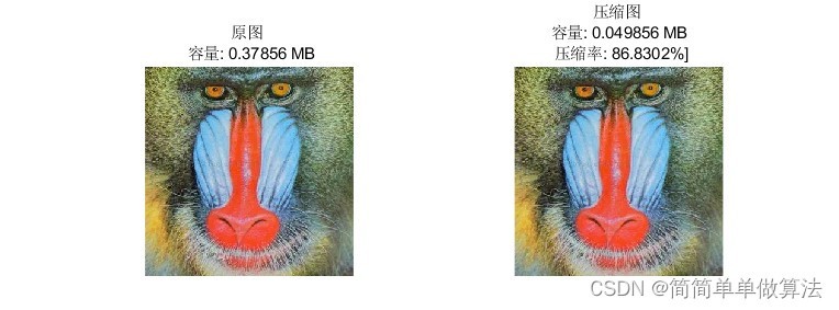 title(sprintf("压缩图 \n 容量: "+ Isize2/(1024*1024) + " MB \n 压缩率: "+CmpRates+"%%]"));
