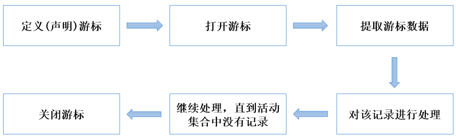 • 第三步,提取游标数据:检索结果集合中的数据行,放入指定的输出变量中。