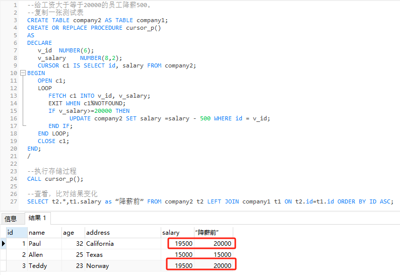 CURSOR c1 IS SELECT id, salary FROM company2;