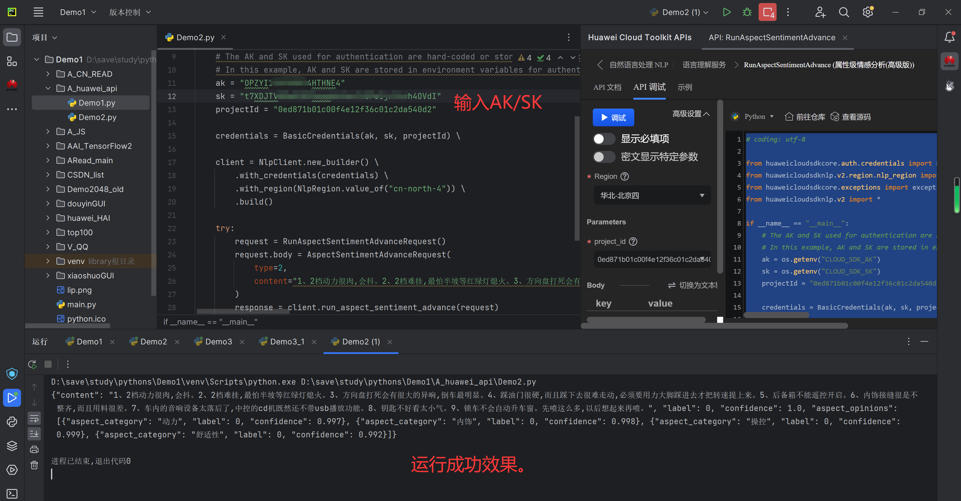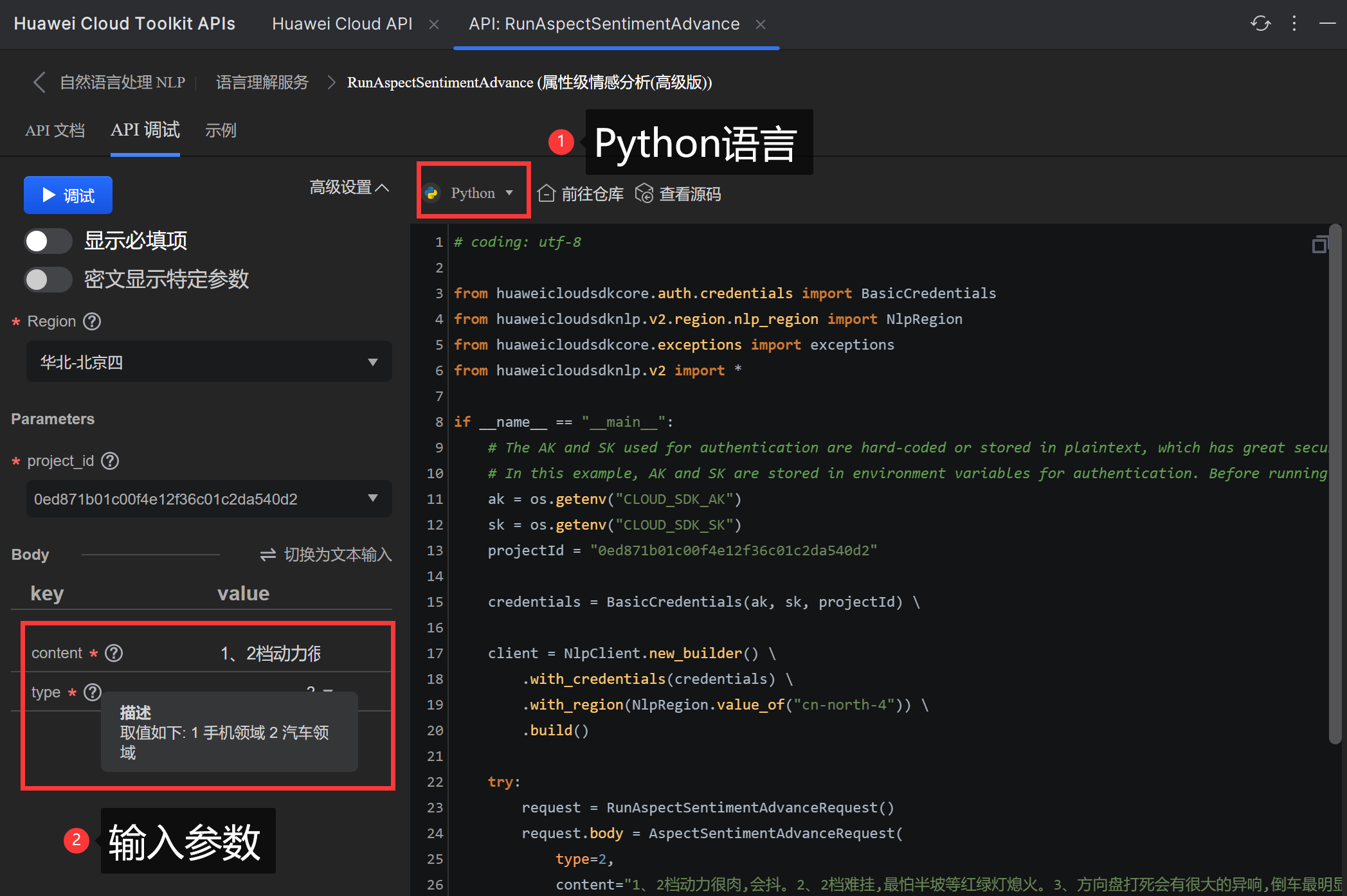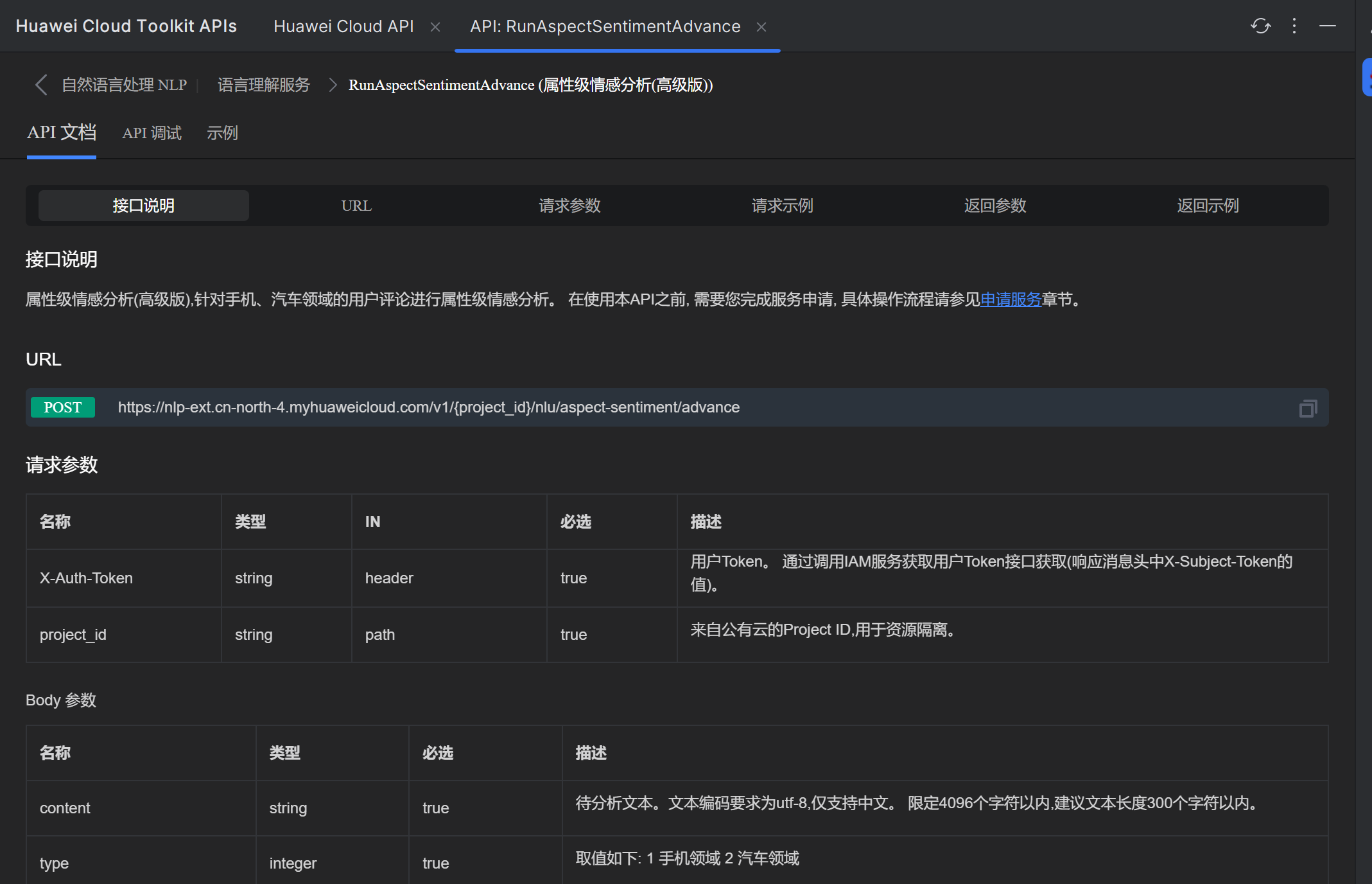 华为Could API人工智能系列——RunAspectSentimentAdvance (属性级情感分析(高级版))
