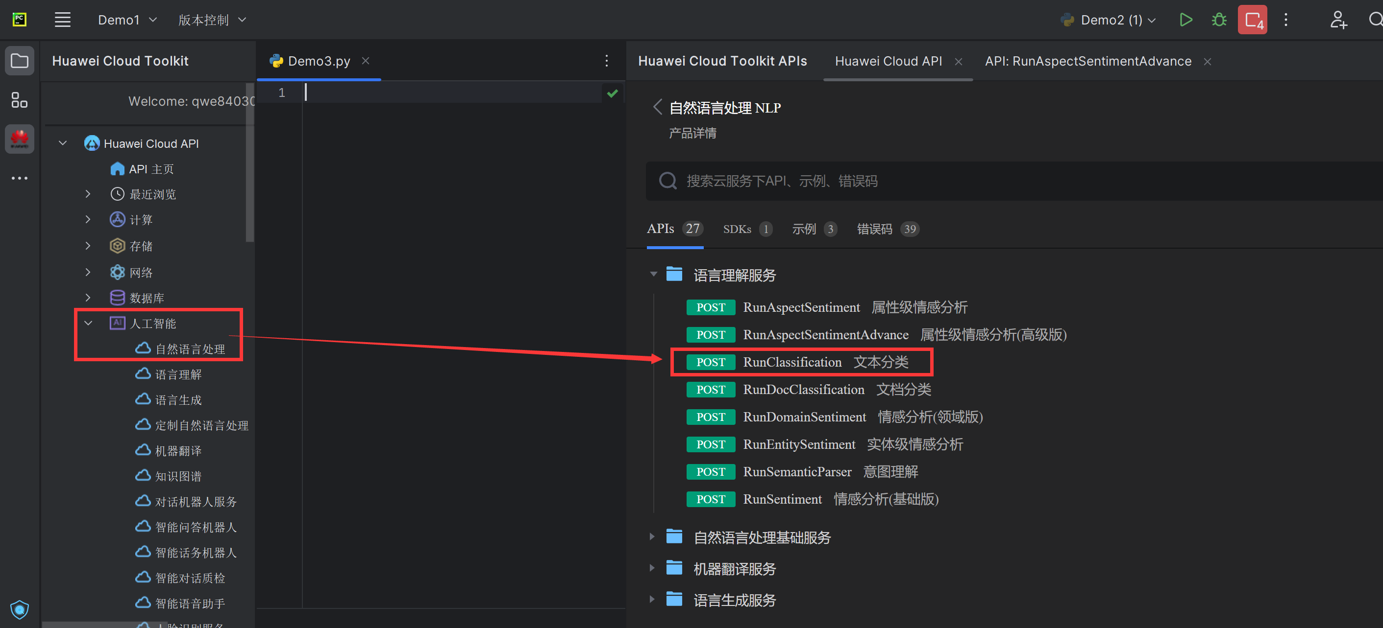 2、Huawei Cloud API:华为云API插件提供华为云服务全量API检索、调试、SDK代码自动补全、集成华为云CLI、示例代码等功能