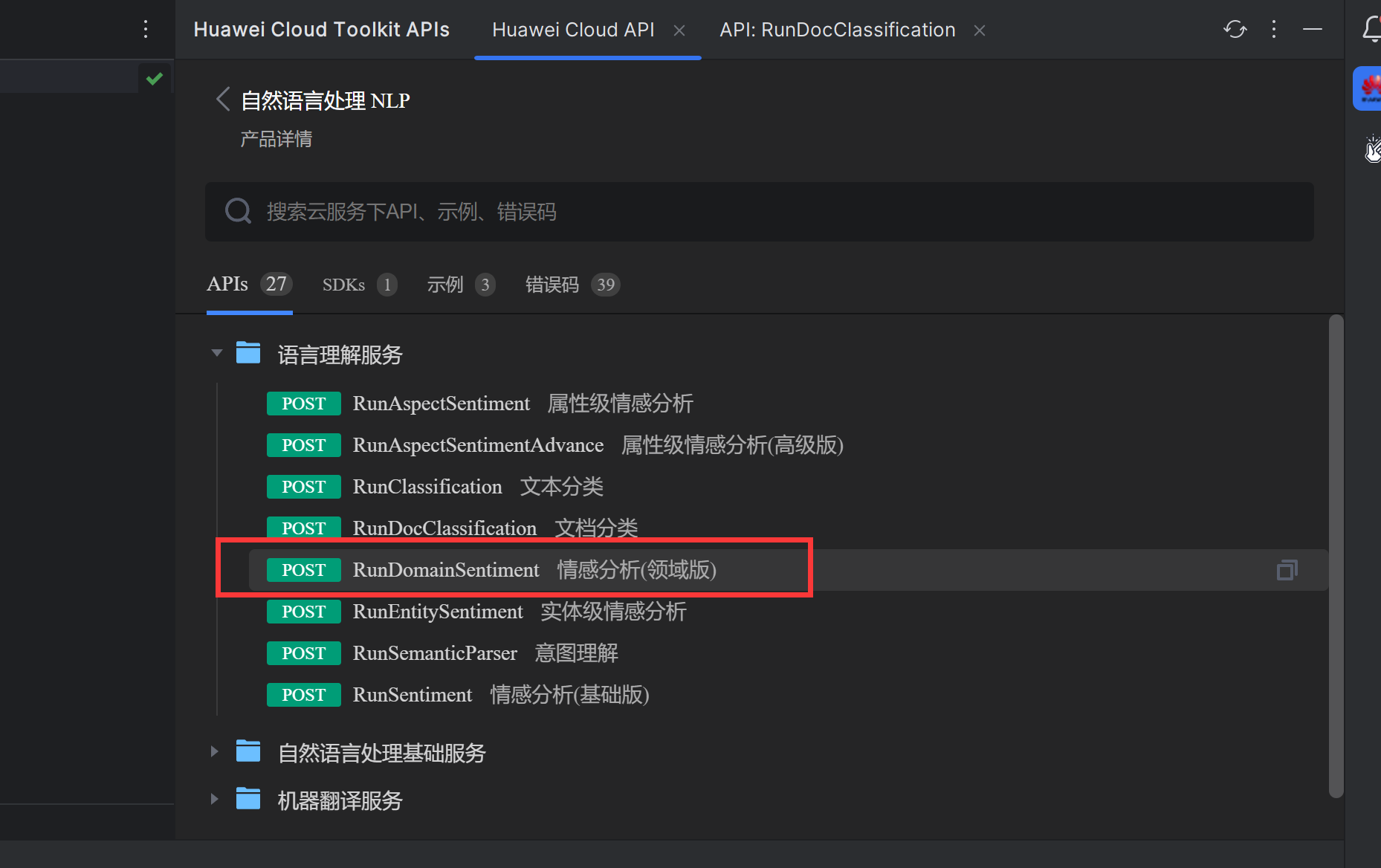 API接口开通地址:https://console.huaweicloud.cn/nlp/#/nlp/overview