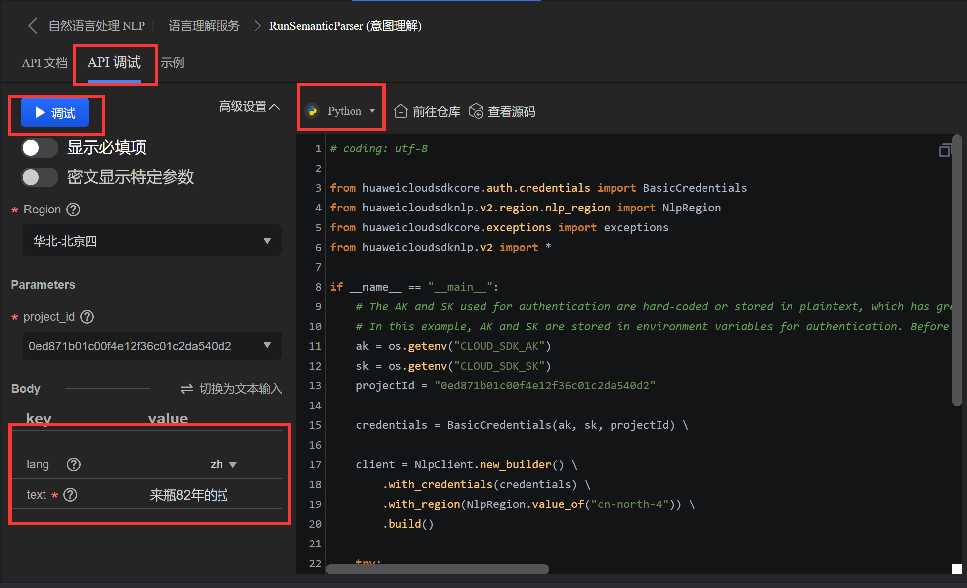 API接口开通地址:https://console.huaweicloud.cn/nlp/#/nlp/overview