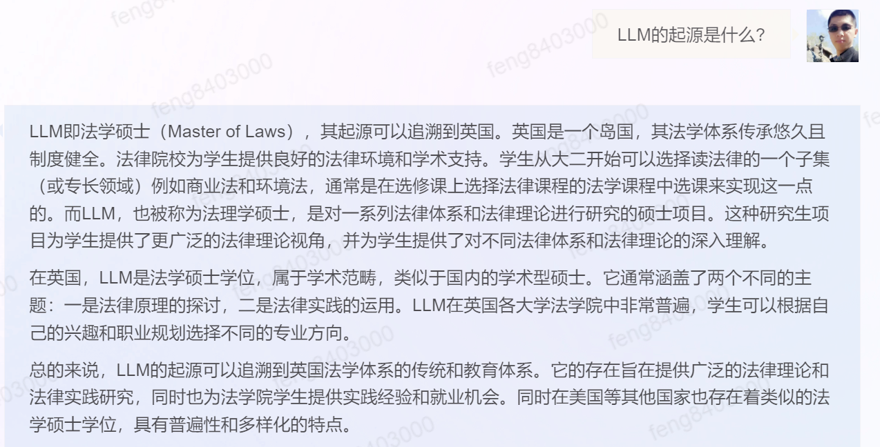 根本不是我们想要的,这个大概率是百度搜出来的,不一定靠谱,按时我知道LLM单独搜索肯定是法学硕士,可以百度的结果真的就靠谱吗?很明显不是,我学生也做个这个,很多信息条是不正确的。