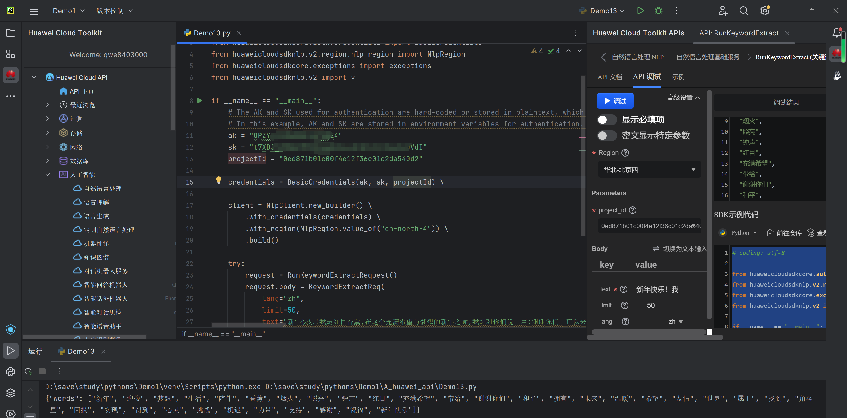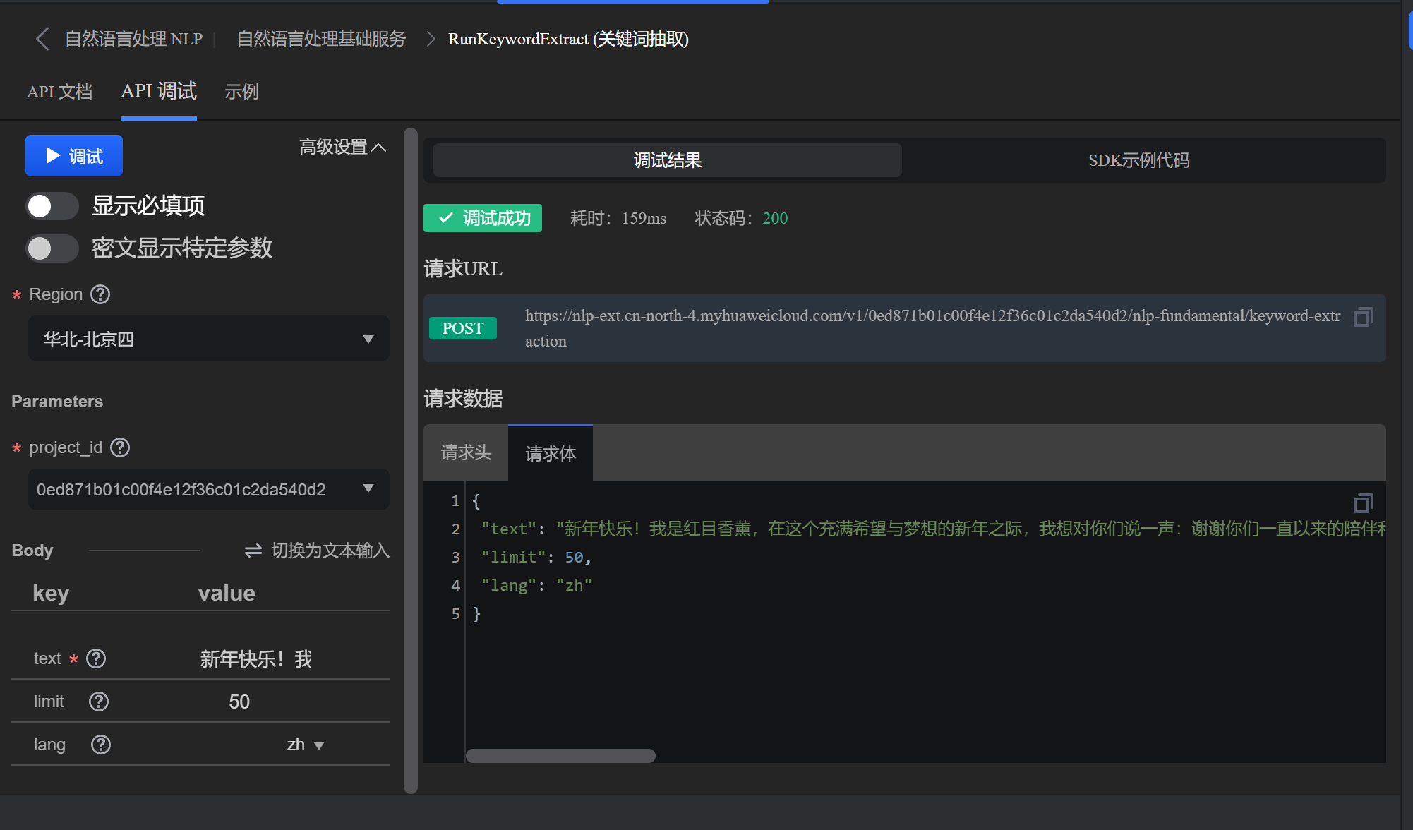 华为Could API人工智能系列——关键词抽取