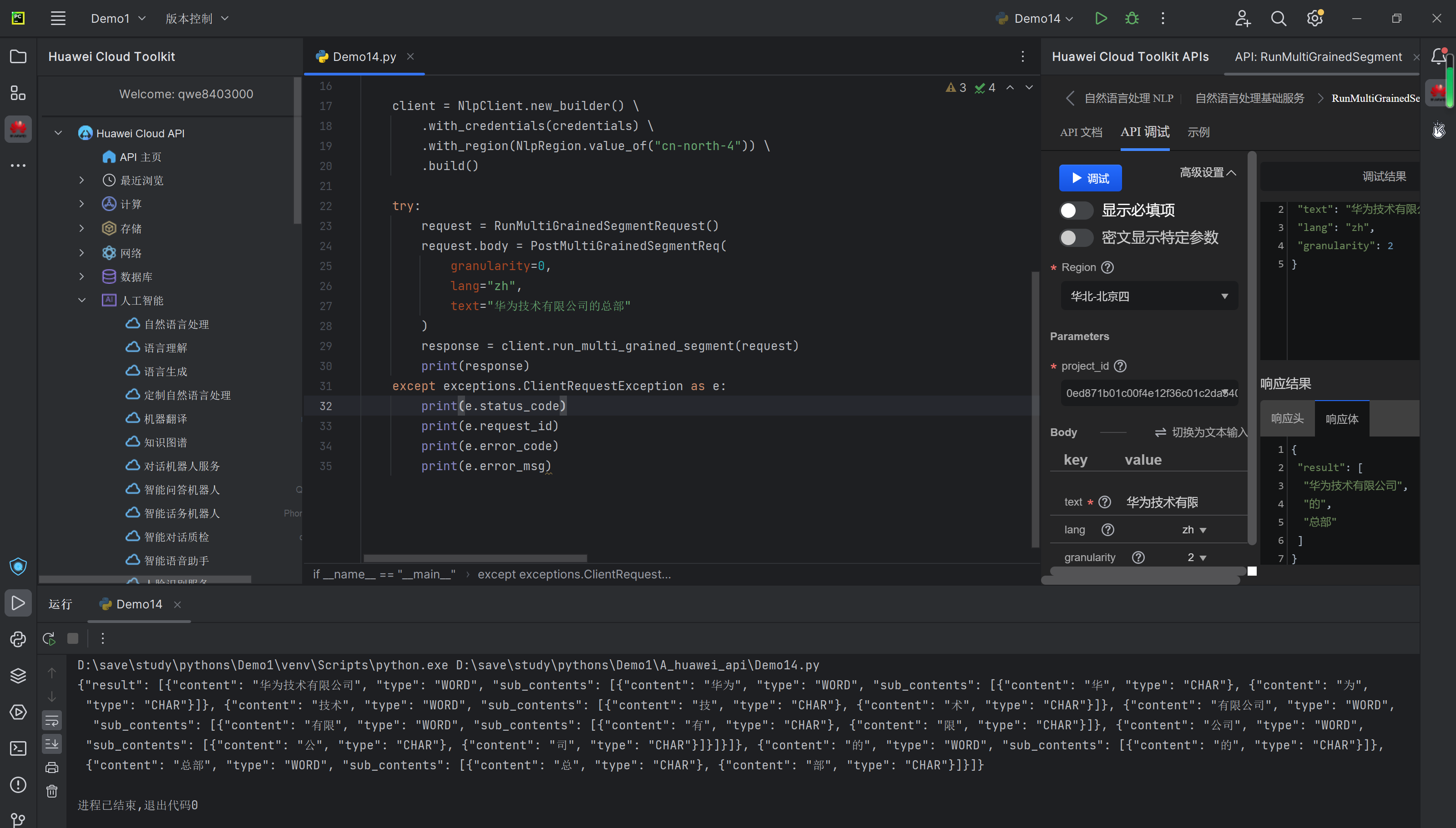 华为Could API人工智能系列——多粒度分词