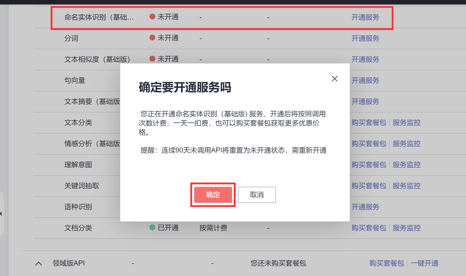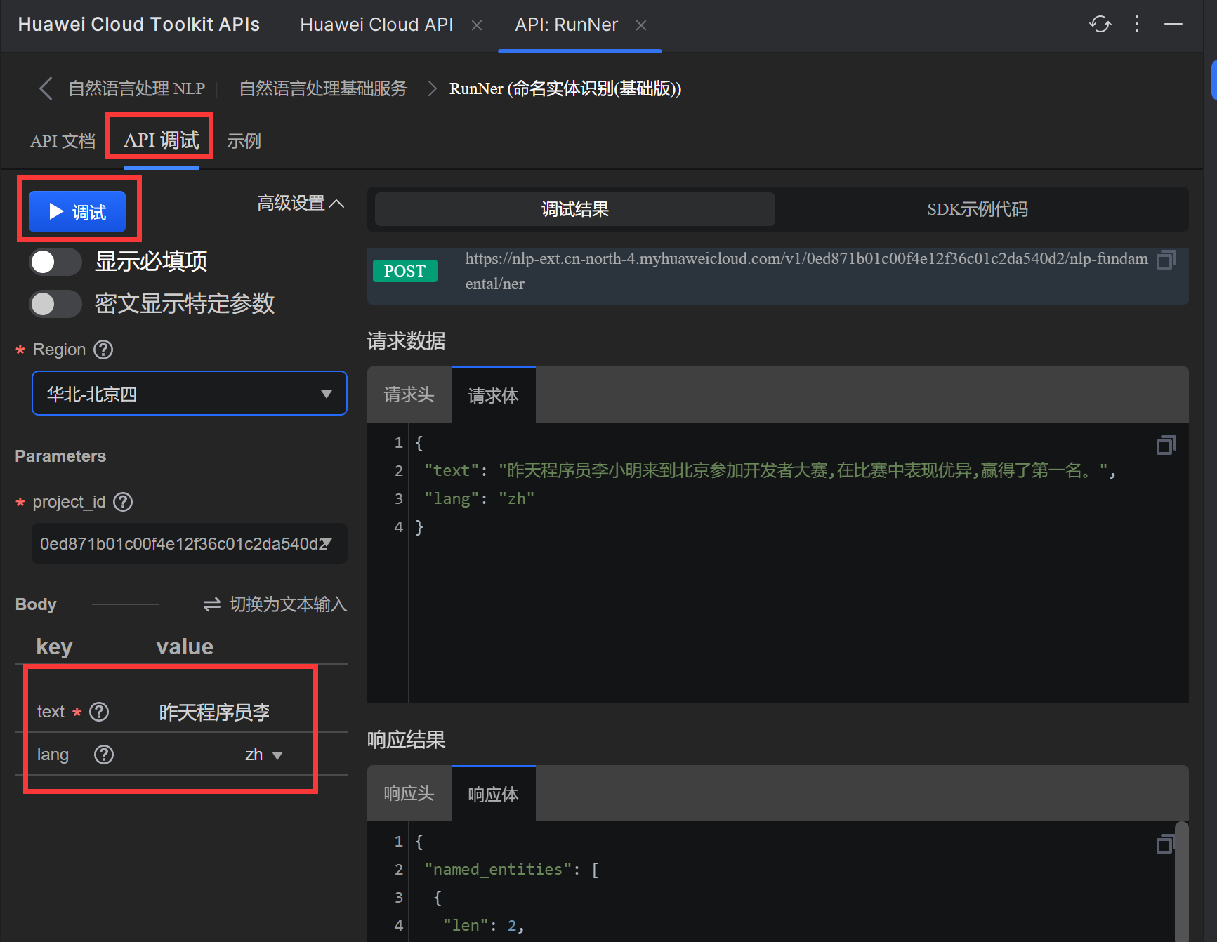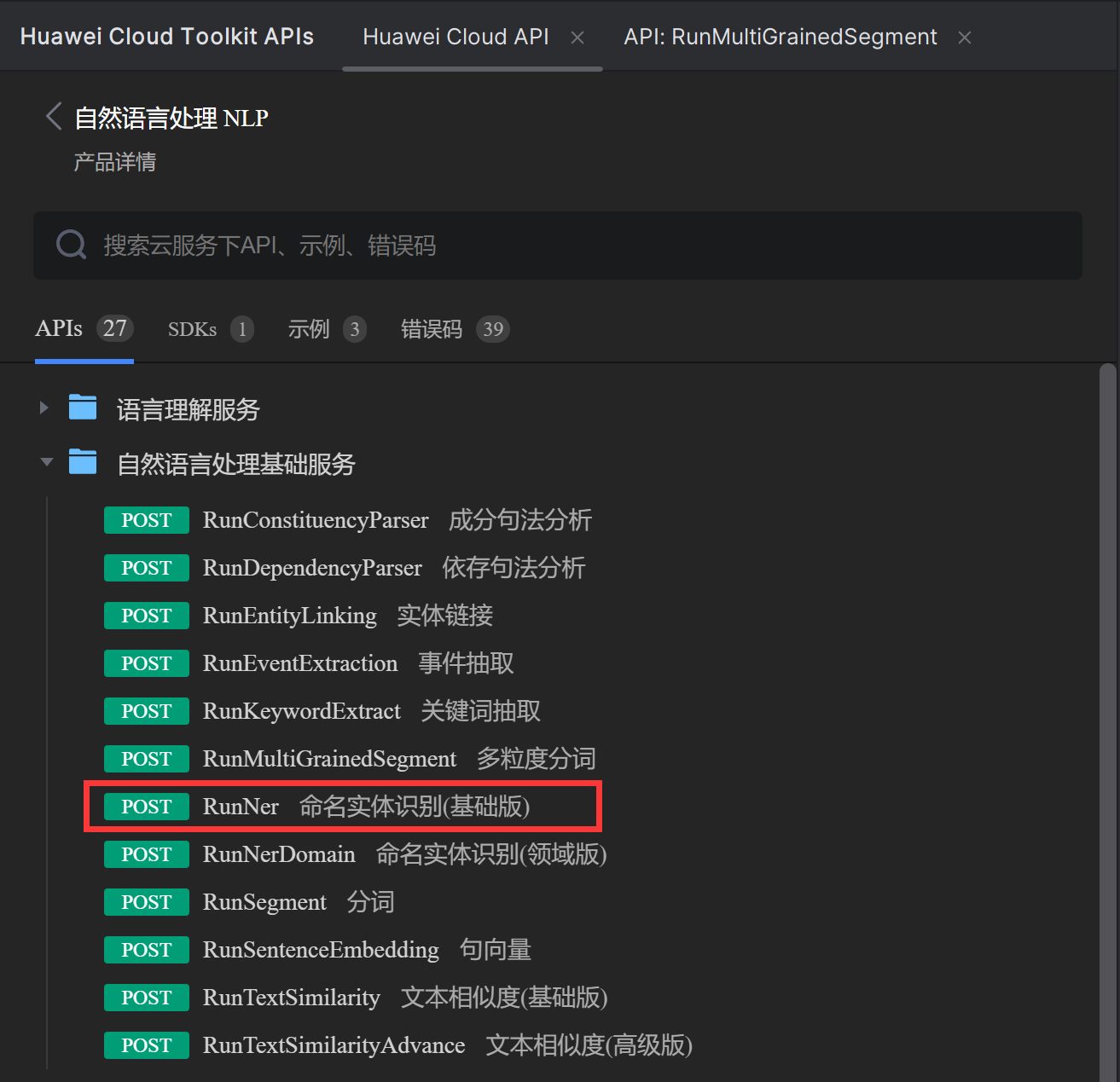 API接口开通地址:https://console.huaweicloud.cn/nlp/#/nlp/overview