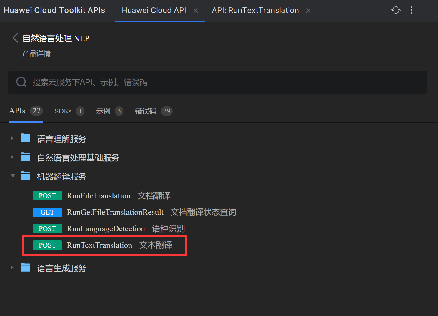 API接口开通地址:https://console.huaweicloud.cn/nlp/#/nlp/overview