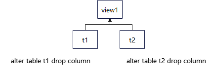 我们在业务中经常存在这种场景,一个视图依赖于两个及以上底层对象,此时在对底层对象分别做DDL操作时,因为都需要将上层视图置为无效状态,所以会导致另外一个对象锁等待周期过长的问题,无法并发执行。以下图所示场景为例:
