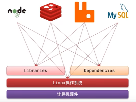 - 将应用的Libs (函数库)、Deps (依赖)、配置与应用一起打包