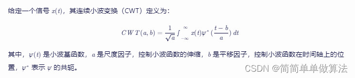 其中,CWT(a,b) 是信号 x(t) 在尺度 a、平移 b 处的连续小波变换系数。