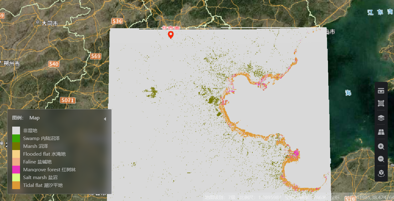该数据集利用时间序列的Landsat反射率数据产品和Sentinel-1 SAR影像,加上分层分类策略和局部自适应随机森林分类算法,成功地整合出2020年第一个具有精细分类系统的全球30米湿地产品。湿地被分为四种内陆湿地(沼泽、沼泽、水淹平地和盐碱地)和三种沿海湿地(红树林、盐沼和潮汐平地)。