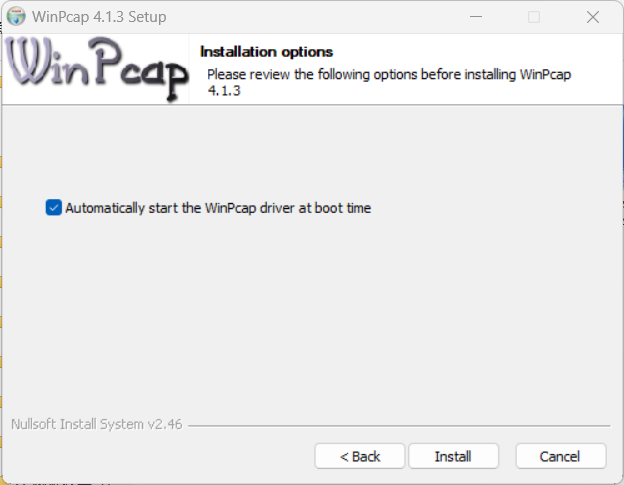 1. 双击安装包(WinPcap_4_1_3.exe)开始安装。