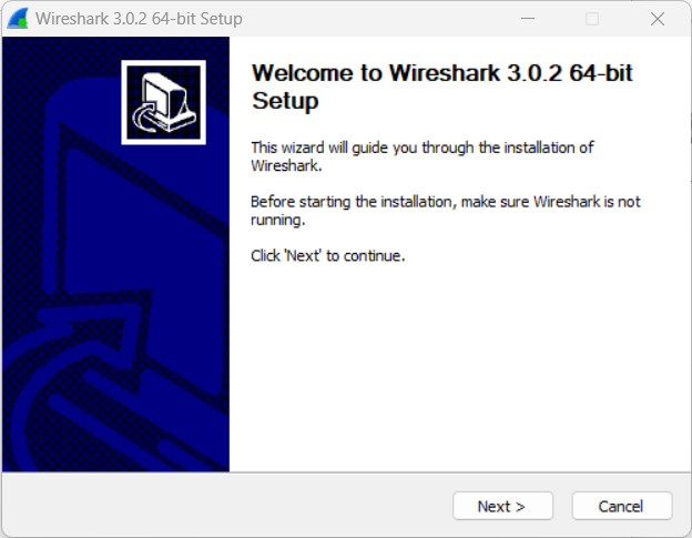 2. 进入“Welcome to Wireshark 3.0.2 64-bit Setup”安装向导界面,单击“Next>”。