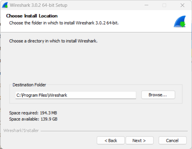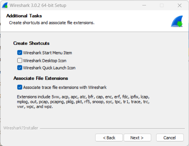 1. 双击安装包(Wireshark-win64-3.0.2.exe)开始安装。