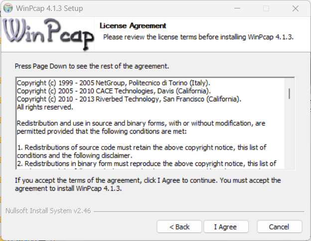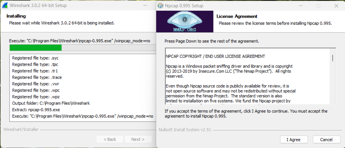 9. 等待安装,安装过程中弹出“Npcap 0.995 Setup”界面,单击“I Agree”同意。