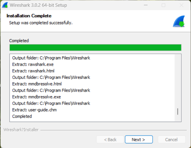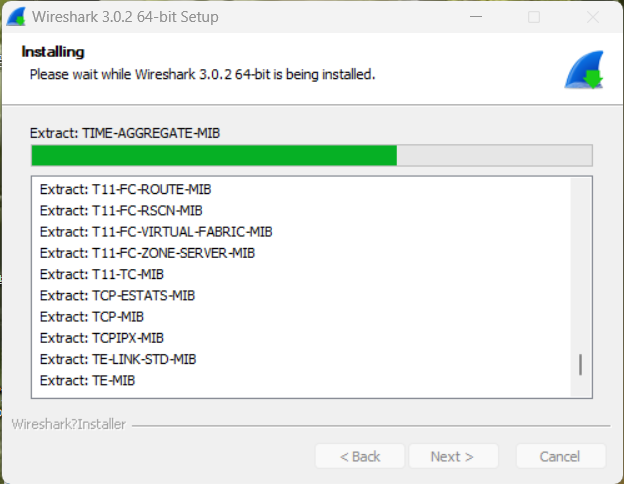 14. 回到原来Wireshark安装界面,等待进度条安装结束。