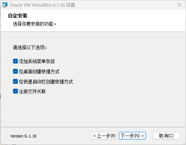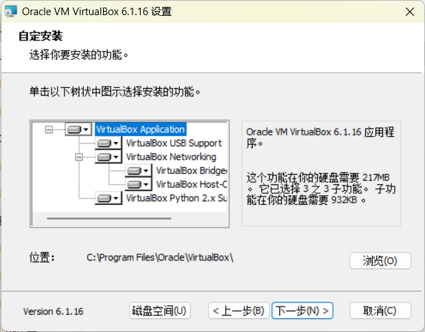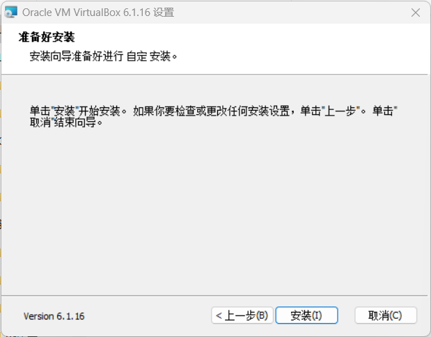 1. 双击安装包(VirtualBox-6.1.16-140961-Win.exe)进行安装,此处我安装了VirtualBox 6.1.16版本。
