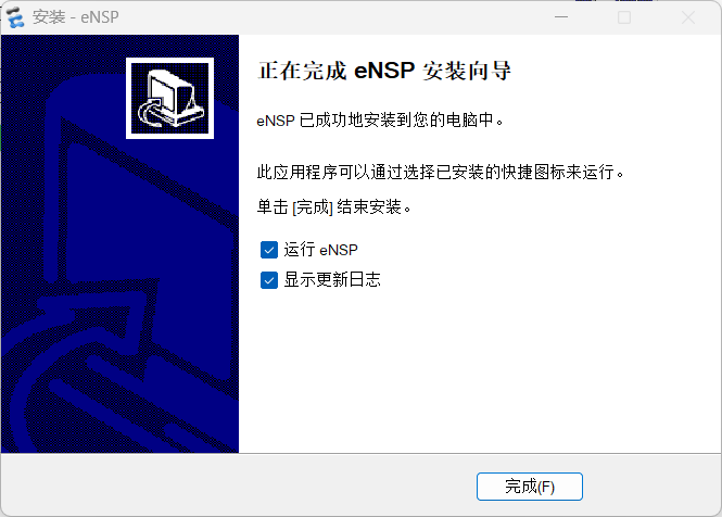 11. 进入安装完成界面,勾选框可自定义选择是否取消,单击“完成(F)”关闭。