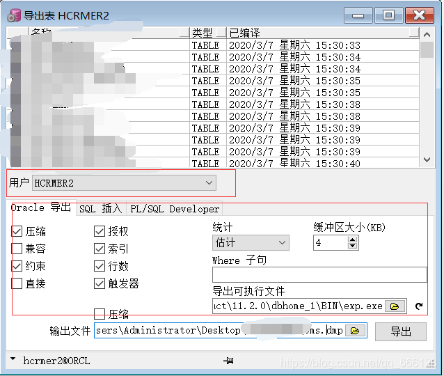 找到工具——》导出表——》选择当前用户——》选择Oracle导出——》选择导出可执行文件(exp.exe)——》输出文件为xxx.dmp(单击导出)