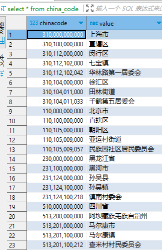 select * from china_code