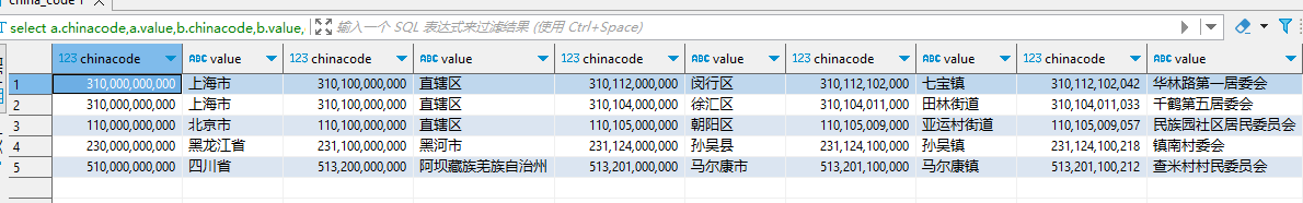 Key_Value 形式 存储_5级省市城乡划分代码 (mysql 8.0 实例)