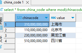 and c.chinacode%1000000=0 and c.chinacode%100000000!=0