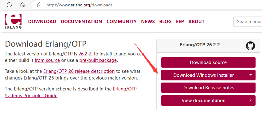 Erlang 环境安装程序官网下载地址:Erlang Downloads