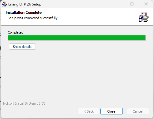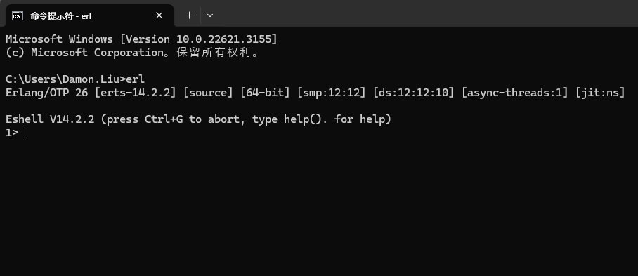 打开命令提示符(cmd),输入 erl,确认 Erlang 版本号是否显示,以验证安装成功。