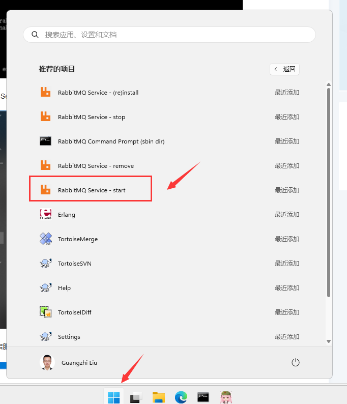 或者打开开始菜单,点击 RabbitMQ Service-start 开启服务。