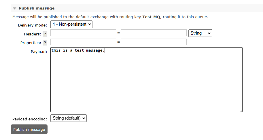 打开下方的 Publish message 折叠窗口,在 Payload 里输入测试消息: