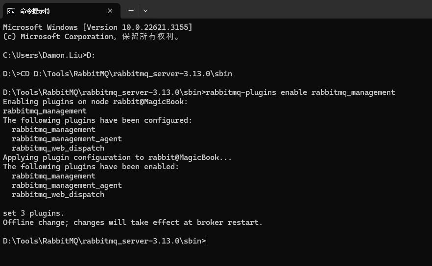 安装完成后,需要激活 RabbitMQ 管理插件。