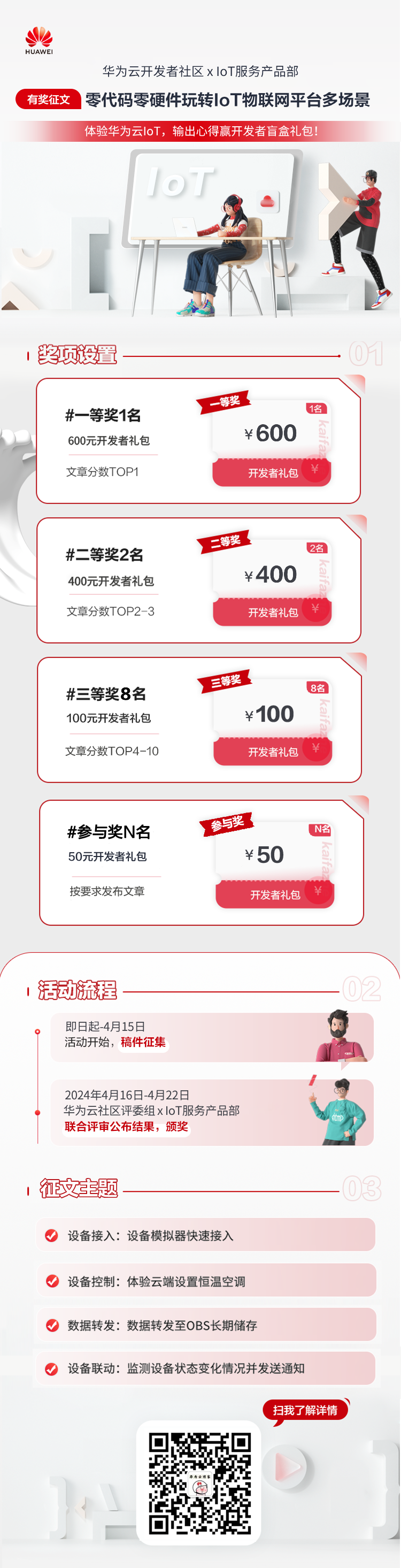 【有奖征文 第29期】零代码零硬件玩转华为云IoT物联网平台多场景,赢取50元京东卡、开发者定制周边好礼!