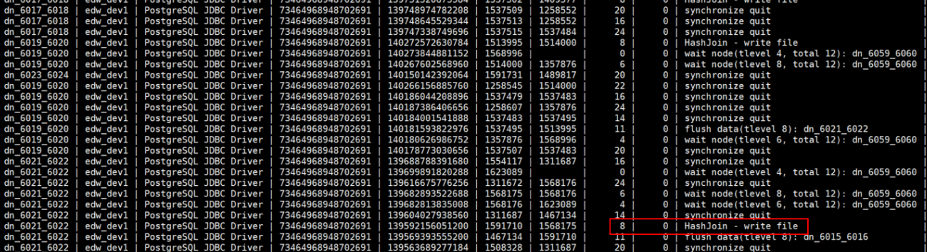 1) 系统管理员根据queryid查看等待视图,等待视图部分结果如下: