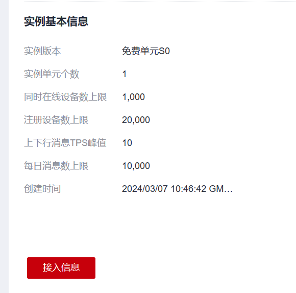 2、然后,在设备接入服务控制台获取设备接入信息,包括域名和端口。