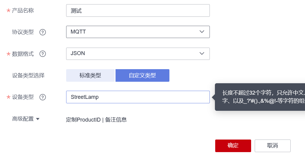 创建我们要接入的产品信息:这里是自定义的一个产品。