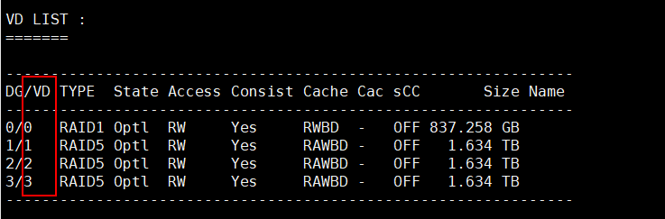 根据VID查看各raid组下每个硬盘的DID和raid组所属的盘符