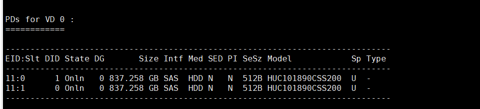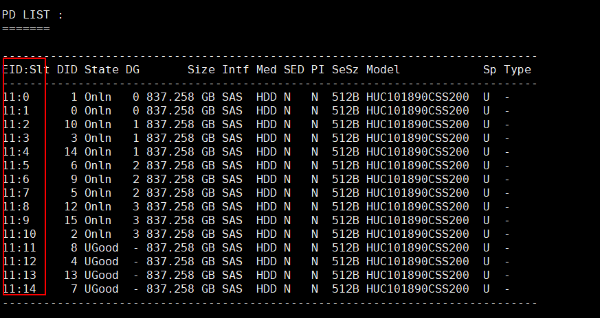查看raid卡下每个物理盘对应的EID、SID