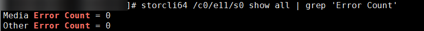 storcli64 /c{ctl_id}/e{EID}/s{SID} show all | grep 'Error Count'