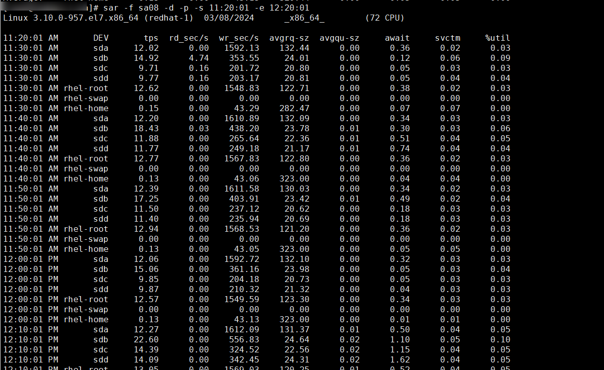 sar -f sa{日期} -d -p -s {开始时间} -e {结束时间}